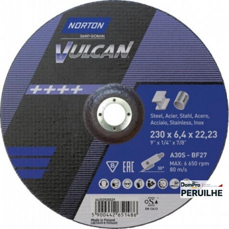 DISQUE ACIER/INOX VULCAN 230X6.4 -NORTON