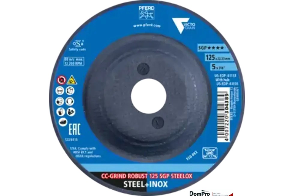 DISQUE CC-GRIND-ROBUST 125 SGP STEELOX - PFERD — Disque abrasif meulage acier et inox