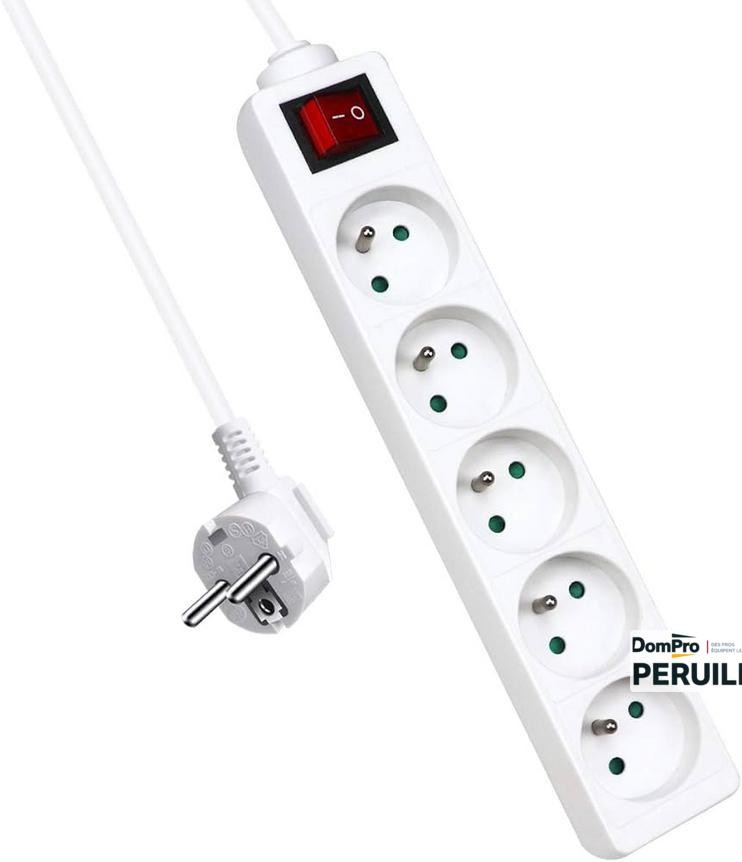 Bloc multiprise 6 prises 2P+T 16 A avec interrupteur, câble 1,5 m 1,5 mm², puissance 3500 W, protection enfants. Idéal pour bureaux et postes de travail.