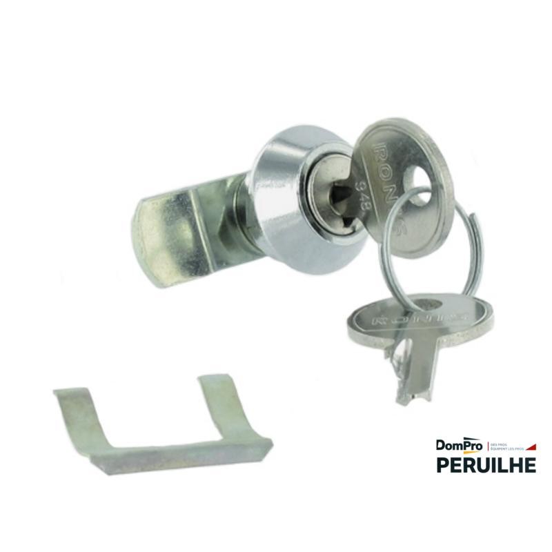 Serrure batteuse à came 1112 N chromée, avec fourchette de fixation et 2 clés. Rotation 180°, zamak nickelé. Livrée sans came, à commander séparément.