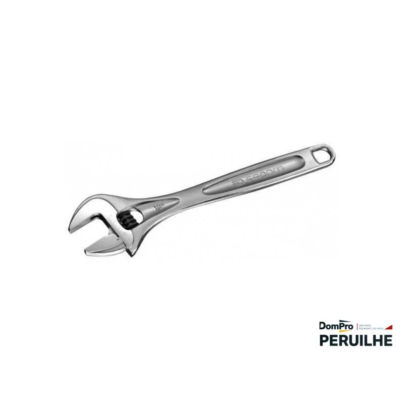 Clé à molette chromée FACOM de 10 pouces (255 mm), ouverture max 30 mm. Mâchoire mobile non saillante et graduation millimétrique pour un réglage rapide. Corps chromé et tête polie.