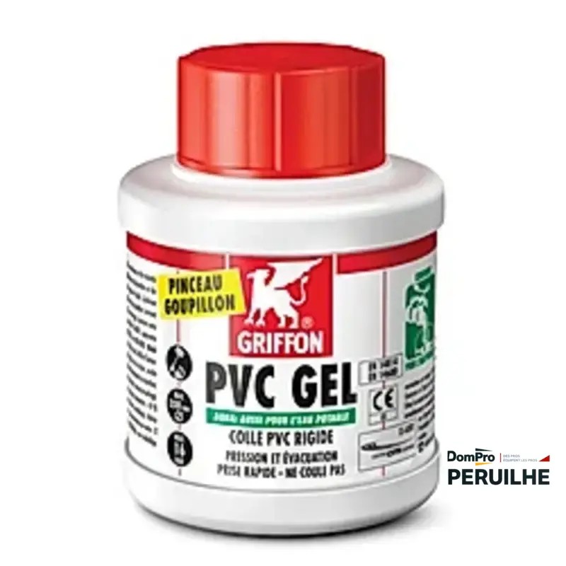 Colle gel PVC rigide 500 ml avec pinceau. Agrément CSTB 11-257. Compatible raccords jusqu'à 160 mm diamètre. Sans solvant chloré.