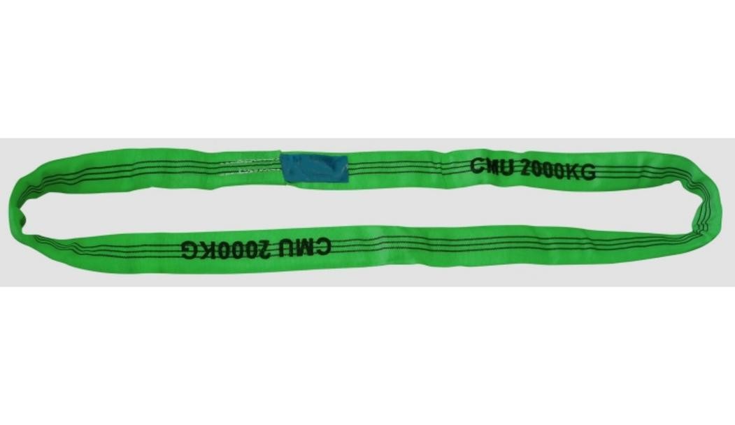Élingue ronde de levage 2 tonnes avec longueur utile de 3 mètres. Conçue pour manutention et levage en sécurité sur chantier et atelier. Coloris vert. Livraison rapide Peruilhe.