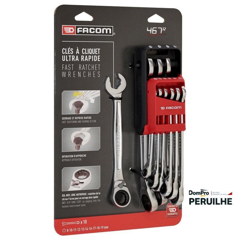 Clé mixte à cliquet Facom, jeu 10 pièces — Outillage à main professionnel