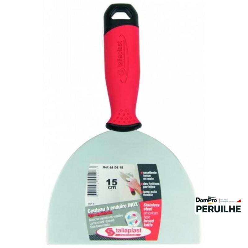 Couteau à enduire type américain de 150 mm avec lame meulée et polie en inox, très flexible. Manche injecté bi-matière pour une bonne prise en main et résistance accrue grâce à la soie traversante. Idéal pour les plaquistes et travaux de finition sur chantier ou atelier.
