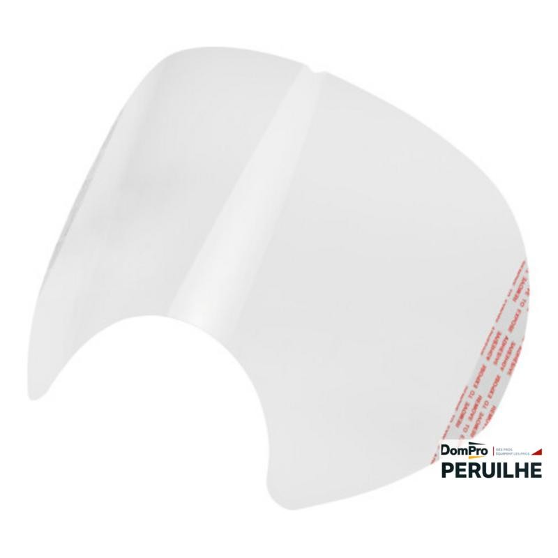 Film protecteur transparent autocollant conçu pour les visières des masques complets 3M série 6000. Il protège l'optique contre salissures et rayures, prolongeant ainsi la durée de vie du masque en conditions d'usage et de stockage. Le film se pose et se retire facilement, ce qui simplifie son remplacement sur chantier ou en atelier.