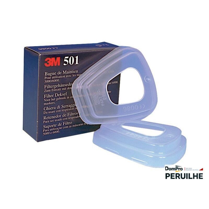 Paire de bagues de maintien pour filtres combinés 3M 501. Compatible filtres antipoussière série 5000 et antigaz série 6000. Montage simple sur masque 6200 et complet 6800.