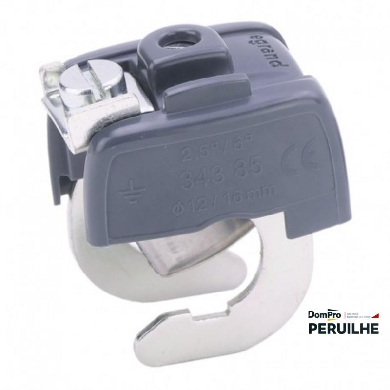 Collier de liaison équipotentielle pour canalisation Ø12 à 16 mm. Section de raccordement maxi 6 mm². Usage électricité mise à la terre.