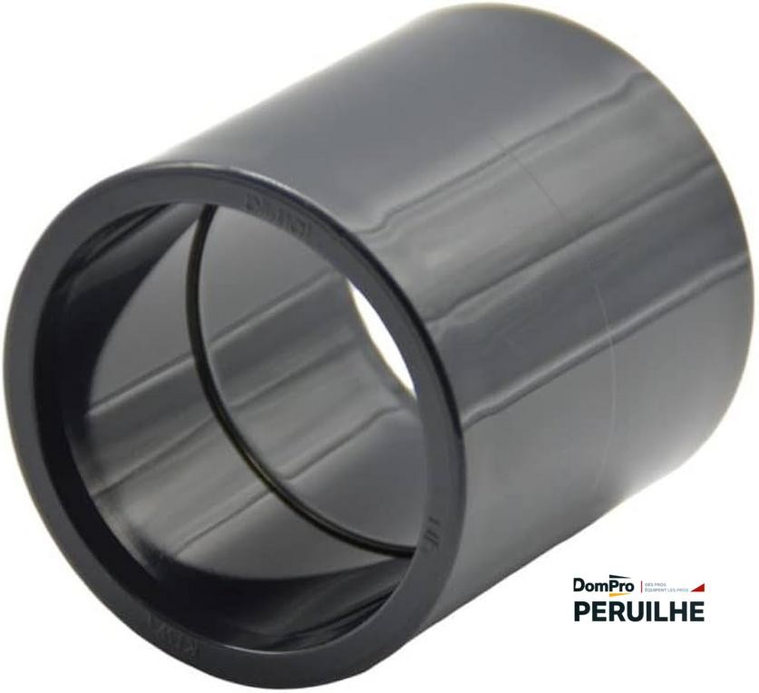 Le manchon présente un diamètre de 40 mm et une longueur de 32 mm selon la référence COMAP 217140. Le joint torique présent sur chaque face garantit un raccord étanche sans besoin d'accessoire supplémentaire. Son matériau s'adapte aux canalisations PVC pour évacuation.