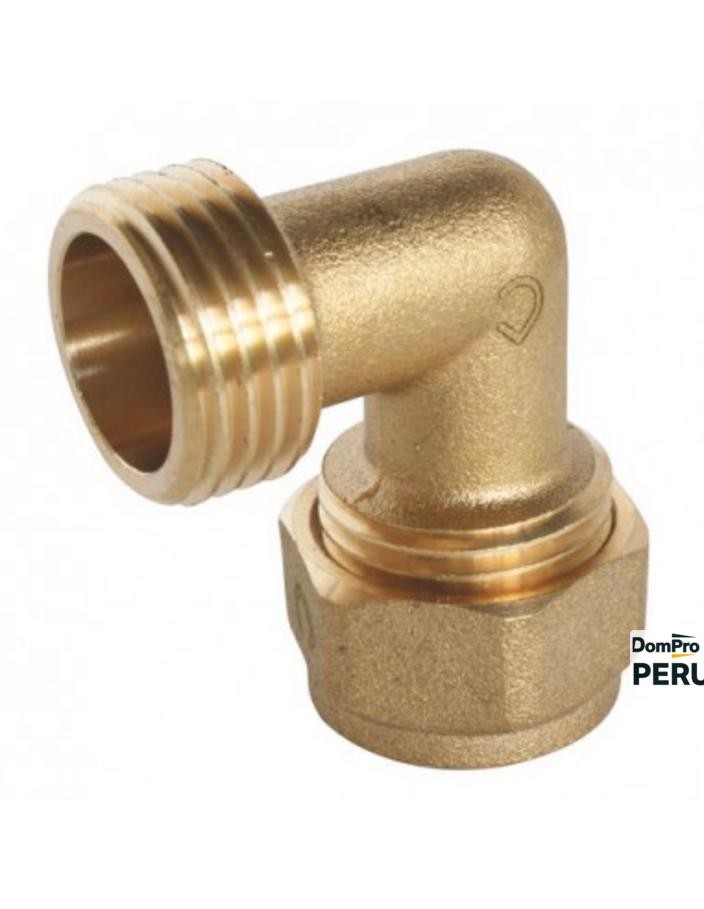 Coude à compression en laiton mâle, dimensions PER 10x12 avec filetage mâle 15/21. Ce raccord assure un changement de direction à 90° pour les tubes PER, couramment utilisés en plomberie et chauffage. Tétine creuse solidement destinée à maintenir le tube PER par compression.