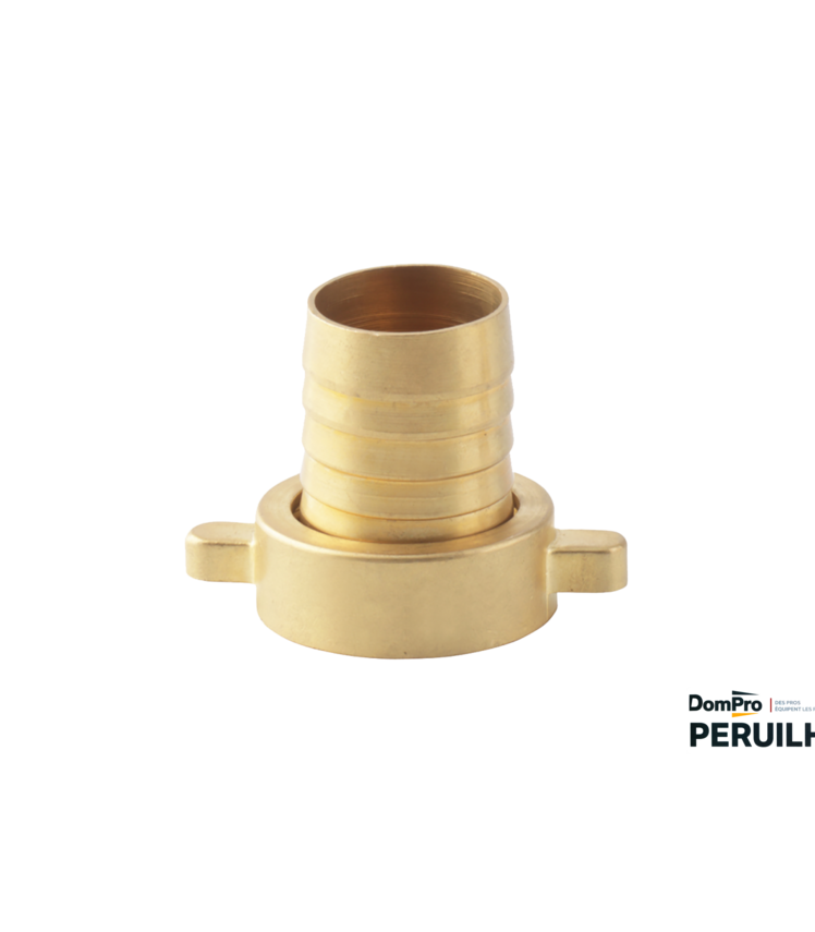 Embout cannelé en laiton avec filetage femelle F20/27. Ce raccord s'adapte à un tuyau de diamètre 15 mm et permet un raccordement solide en plomberie industrielle. La finition en laiton garantit résistance à la corrosion et tenue dans le temps.