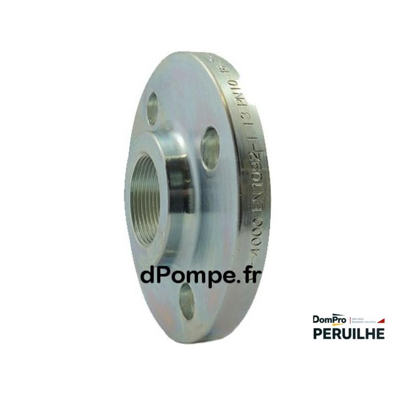 Bride taraudée en acier S235JR, DN 15, Rp 1/2", 4 trous, PN 40 selon norme EN1092-1 type 13B. Compatible raccords ISO 7-1. Livraison rapide Peruilhe.